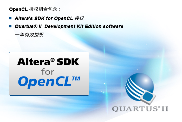 SDK的开放计算语言 (Open Computing Language, OpenCL™) 将提供更为简易的方式, 让您能轻易在 FPGA 平台上建构 OpenCL 的应用设计环境。