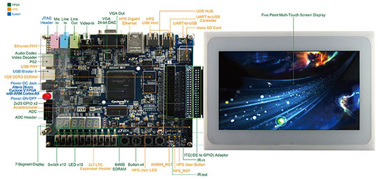 DE1-SoC-MTL2 分页 3. 元件配置 1. 产品橱窗 2. 产品规格 3. 元件配置 4. 设计资源 5. Demo 6. 包装内容 7. 立即购买 尺寸:354*130*20 mm 产品规格 设计资源
