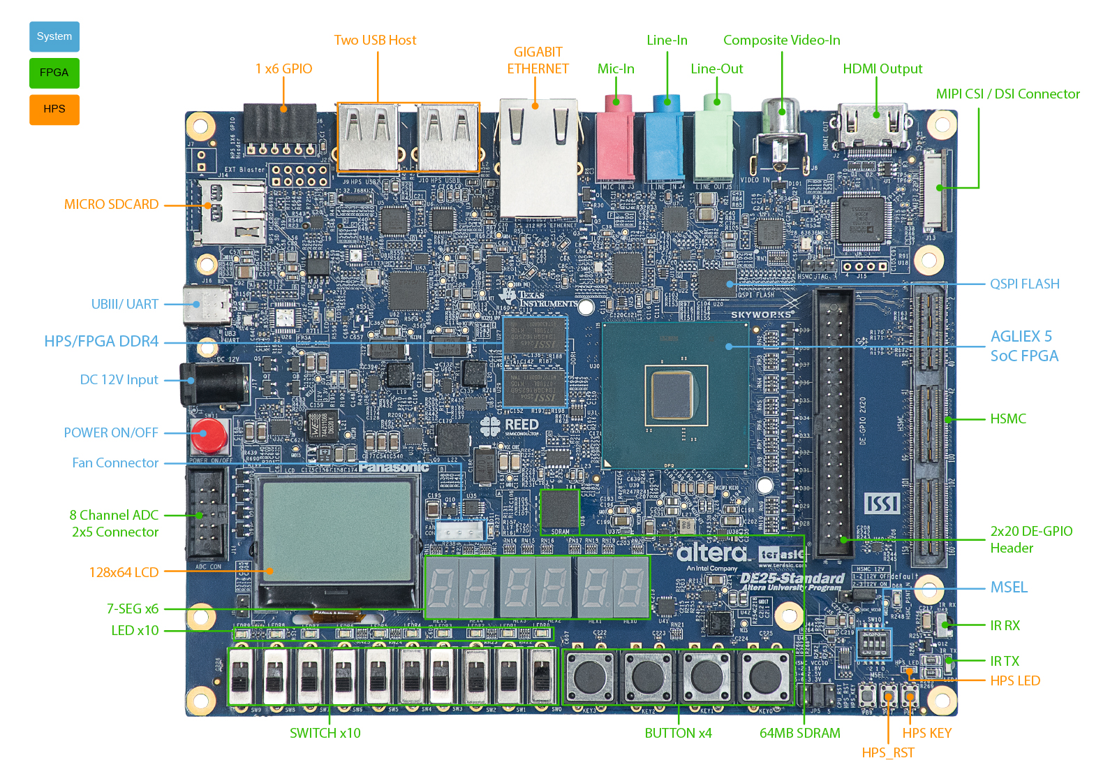 DE25-Standard Development and Education Kit Page 3. Layout 1. Overview 2. Specifications 3. Layout 4. Resources 5. Kit Contents 6. Demo 7. Order Now Sizeļ¼166*130 mm Specifications Resources