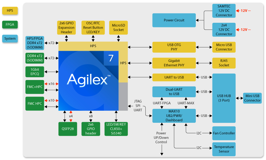 - FPGA: Agilex AGFB014R24B2E2V (1400K LEs)