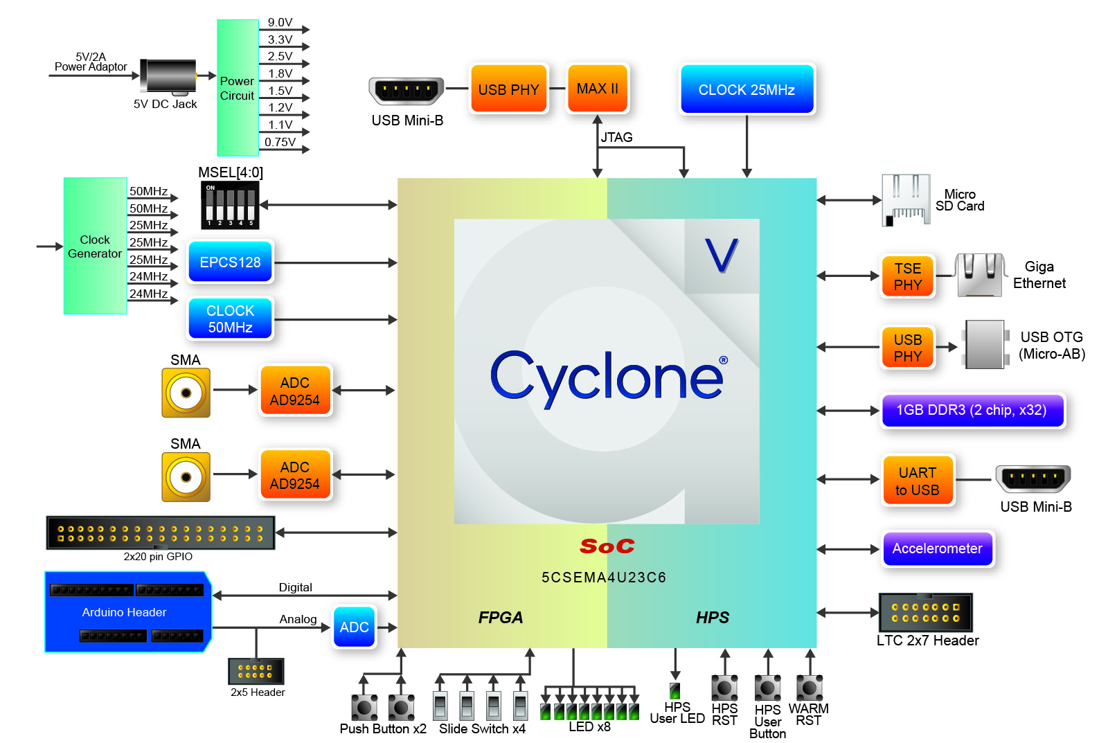 - USB-Blaster II onboard for programming; JTAG Mode