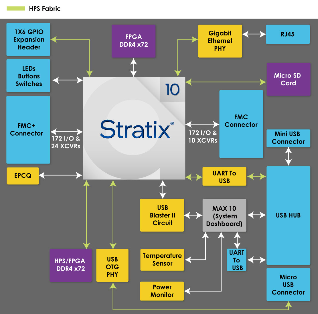 - On-Board USB Blaster II for FPGA programming and Debug