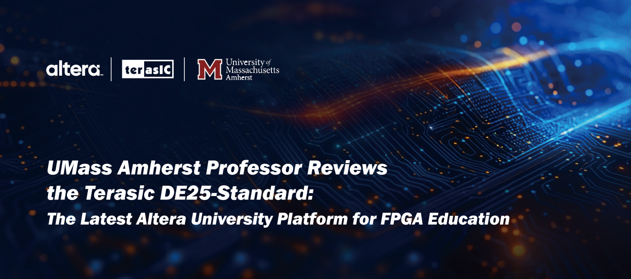 2025-11-05 UMass Amherst Professor Reviews the Terasic DE25-Standard: The Latest Altera University Platform for FPGA Education Read More 2025-08-29 DYNANIC on Terasic Mercury A2700: Unleashing 400G Stateful Packet Flow Processing Read More 2024-09-20 Join Terasic at Altera Innovator’s Day2024 on Sept 23rd in San Jose, CA! Read More 2024-08-20 Be the pilot user for the new DE25-Standard Development Kit! Write a technical review! Read More 2024-04-26 Terasic Mercury A2700 Accelerator Card Fully Supports Altera® FPGA CXL IP! Read More 2024-04-15 Quantum Computing Emulators Based on Terasic FPGA Development Kits! Read More 2022-08-31 Terasic and Intel Deliver Cutting-Edge Platform for Intel Pathfinder for RISC-V to Accelerate Innovation Read More 2022-02-24 DE10-Nano is now officially certified as a Microsoft Azure IoT Plug-and-Play device! Read More 2021-08-25 2021 InnovateFPGA Design Contest - Connecting the Edge for a Sustainable Future! Read More 2021-03-10 The University of Cambridge adopts Terasic's DE10-Pro for Their POETS Project Read More