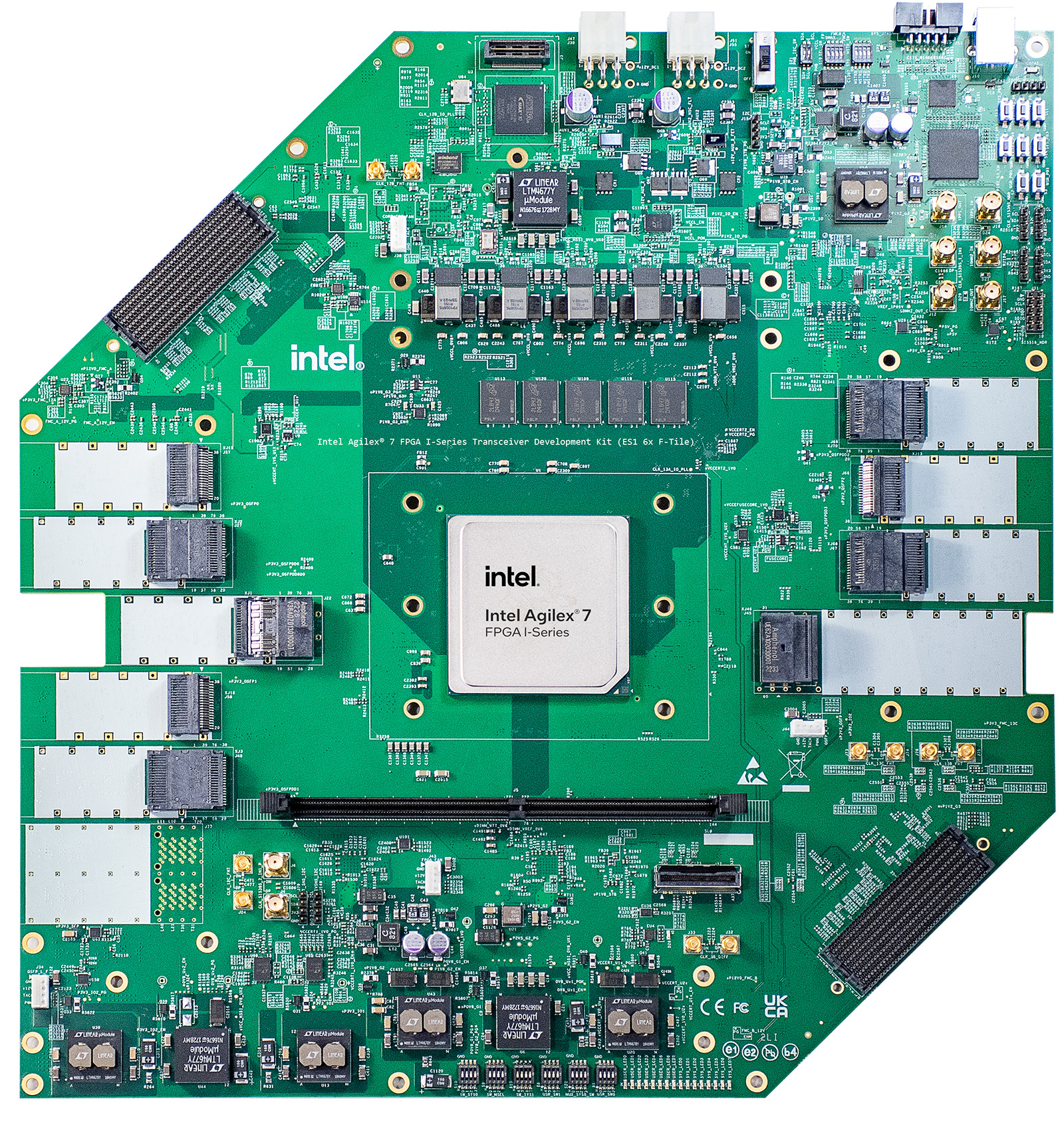 The Agilex 7 FPGA I-Series Transceiver (6 × F-Tile) Development Kit is a high-performance platform tailored for evaluating and prototyping advanced transceiver applications. With six F-Tiles, it supports a wide range of high-speed connectivity standards including QSFPDD800, OSFP, and PCIe 4.0. The kit includes both soldered-down and DIMM-based DDR4 memory, enabling robust memory bandwidth for data-intensive workloads.