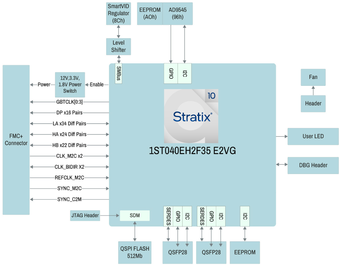 - FPGA: Stratix 10 TX FPGA 1ST040EH2F35E2VG