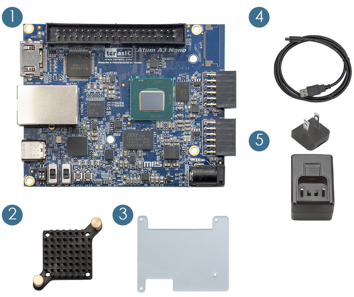 Atum A3 Nano 分页 5. 包装内容 1. 产品橱窗 2. 产品规格 3. 元件配置 4. 设计资源 5. 包装内容 6. Demo 7. 立即购买 Atum-A3-Nano 开发板 散热器(已预装) 亚克力盖板(已预装) USB Type-C 数据线 5V/2A 直流电源适配器 图片中的配件仅供参考,实物配件可能与图片中的有所差异,但功能相同 设计资源 Demo