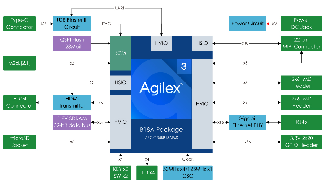 - FPGA 芯片:Agilex 3 A3CZ135BB18AE7S 器件